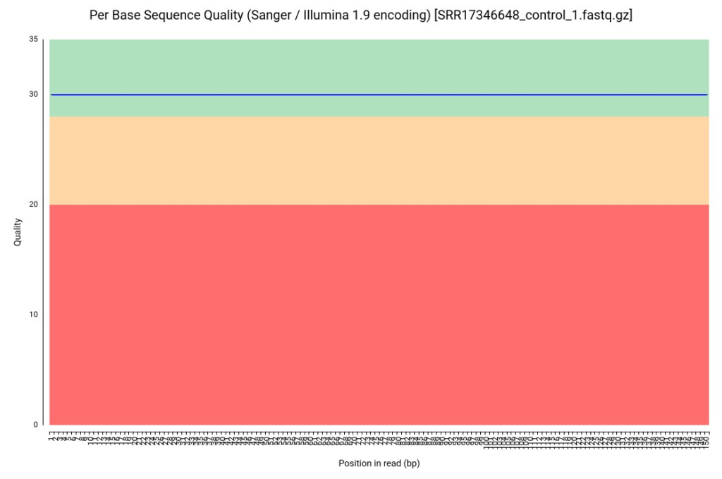 Given that our initial quality check revealed an unusually “flat” and high-quality profile, suggesting prior processing by the authors, our focus with Trimmomatic shifted from general quality filtering to targeted adapter removal and safety pruning.