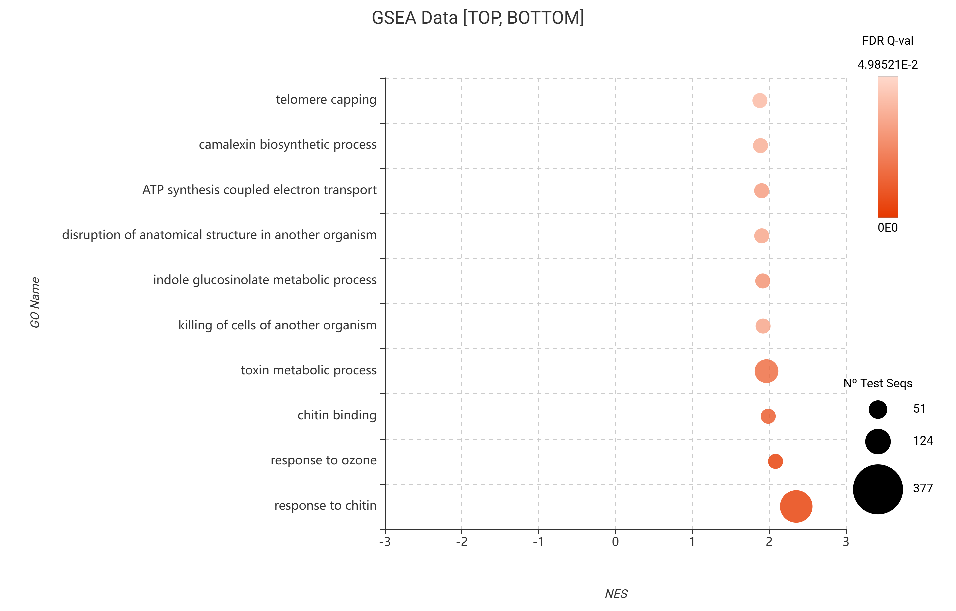 Figure 21. GSEA bubble plot for Gene Ontology terms, filtered to show the 10 most enriched categories (top NES) based on DESeq2 differential expression.
