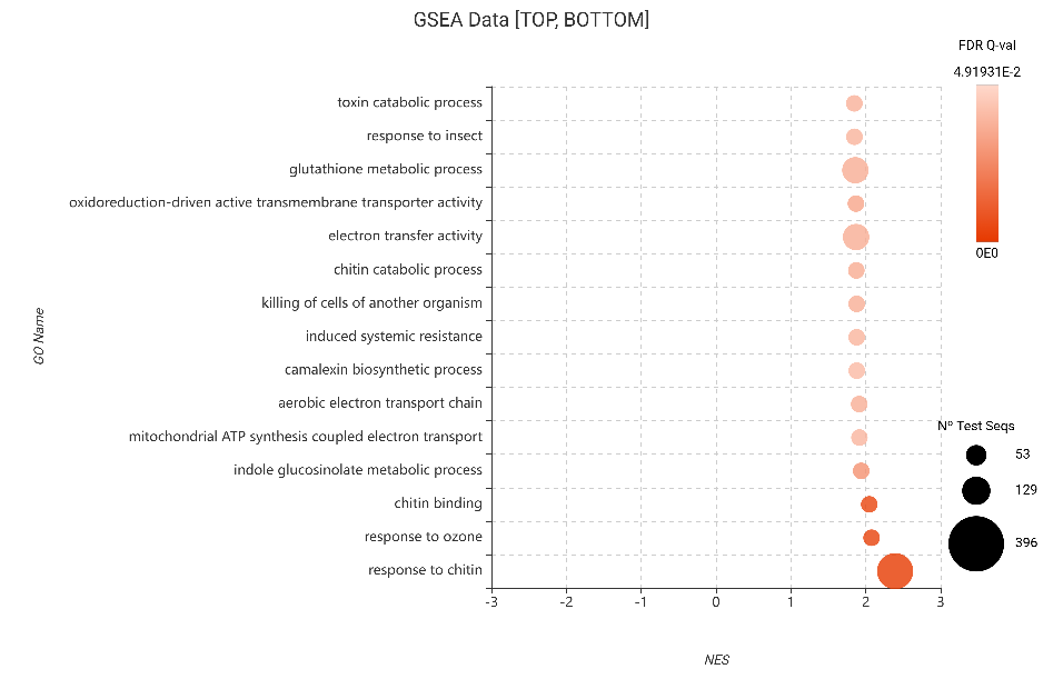 Figure 17. GSEA bubble plot for Gene Ontology terms, filtered to show the 15 most enriched categories (top NES) based on edgeR differential expression.