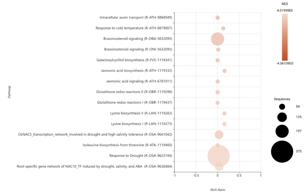The final layer of our biological interpretation is Pathway Analysis. As highlighted in the OmicsBox methodology, this tool allows us to move beyond lists of individual genes to visualize the topology of biological reactions. By integrating our edgeR differential expression data into these interaction networks, we pinpointed exactly which “circuits” in Rorippa indica are being rewired during the aphid attack.