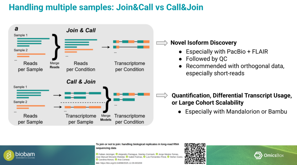 Handling high-volume sequencing data often requires substantial computational resources and careful pipeline configuration. Marta showed how OmicsBox addresses these challenges through automatic cloud-based parallelization, which operates in the background. Users do not need to configure infrastructure or manage resource allocation manually.